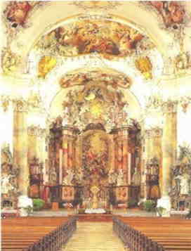 | Bei einem Besuch Creszentias in Ottobeuren im August 1741 zeigte ihr Abt Anselm den Kreuzgang, dessen Wandbilder aus dem Alten und Neuen Testament großen Eindruck auf sie machten, wie sie am 13. Oktober 1741 an Abt Anselm schrieb, und die sie veranlaßten, auch im Kaufbeurer Konventbau einen Kreuzweg malen zu lassen. Am 4. April 1742 legte sie dem Abt zum Zeichen ihres Dankes noch ein kleines Heiliggeist-Bild bei. | ![]() |